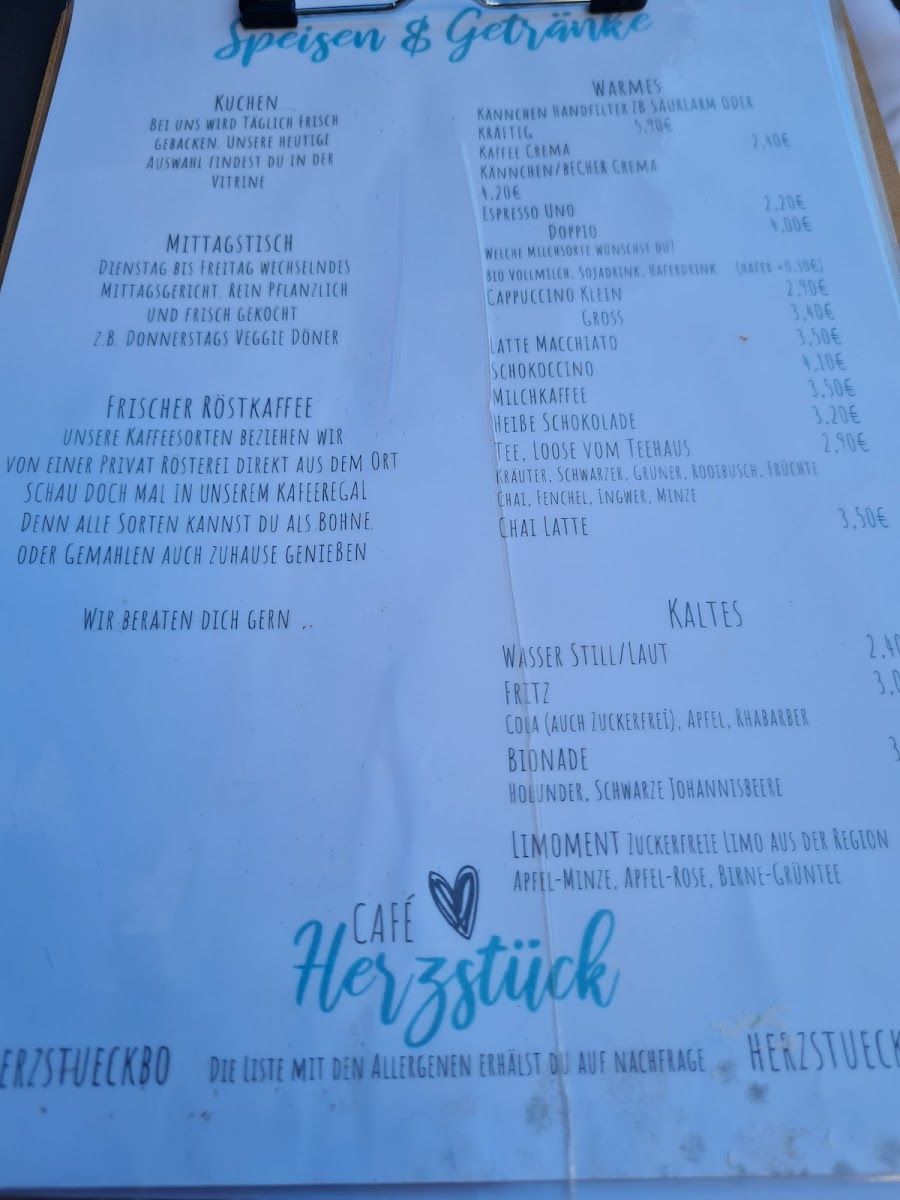 The menu offers a tempting selection of four delectable cakes: chocolate mousse, blueberry pie, Swedish apple pie, and poppy-enriched pound cake, each crafted with care. Many visitors appreciate the quick service and the possibility of mobile payments, making it a convenient choice for all. Whether you're seeking a comforting drink or a sweet treat, Cafe Herzstuck promises a heartwarming experience. Don't miss the opportunity to indulge in this hidden gem!